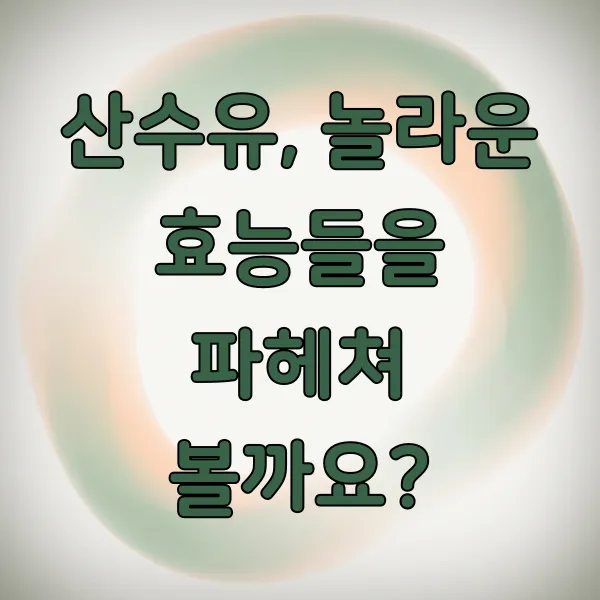 산수유의 건강 효능은 그 안에 풍부하게 함유된 특별한 성분들 덕분이에요. 코르닌, 타닌, 사포닌 등은 산수유의 대표적인 활성 성분으로, 우리 몸 곳곳에 긍정적인 영향을 준다고 알려져 있어요. 이러한 성분들이 어떻게 우리 몸을 돕는지 자세히 알아볼게요!