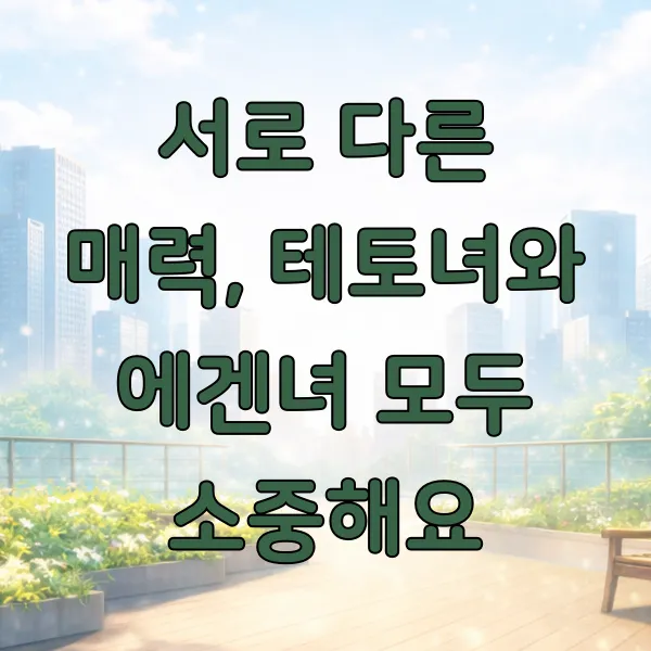 - 성격 차이: 테토녀는 논리적/현실적, 에겐녀는 감정적/공감적.