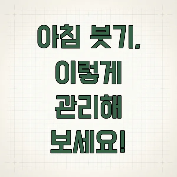 - 아침 붓기의 주요 원인: 수면 자세, 염분/야식 섭취, 수분 부족, 호르몬 변화, 알레르기, 스트레스, 음주 등이 복합적으로 작용할 수 있습니다.